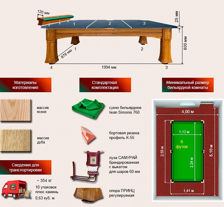 Бильярдный стол для русской пирамиды "Самурай" (8 футов, ясень, 25мм камень)