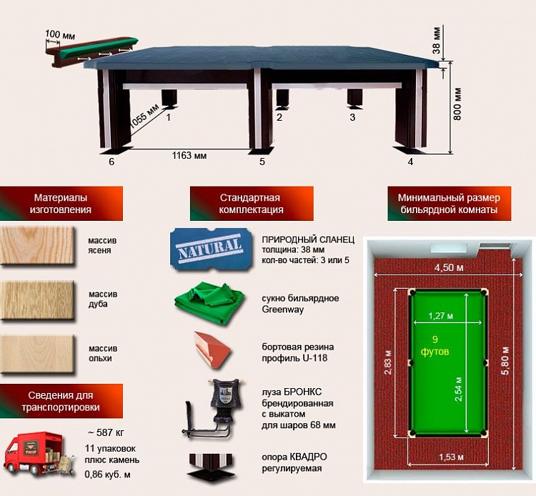 Бильярдный стол для русской пирамиды "Бронкс-Премиум" (9 футов, ясень, 38мм камень)